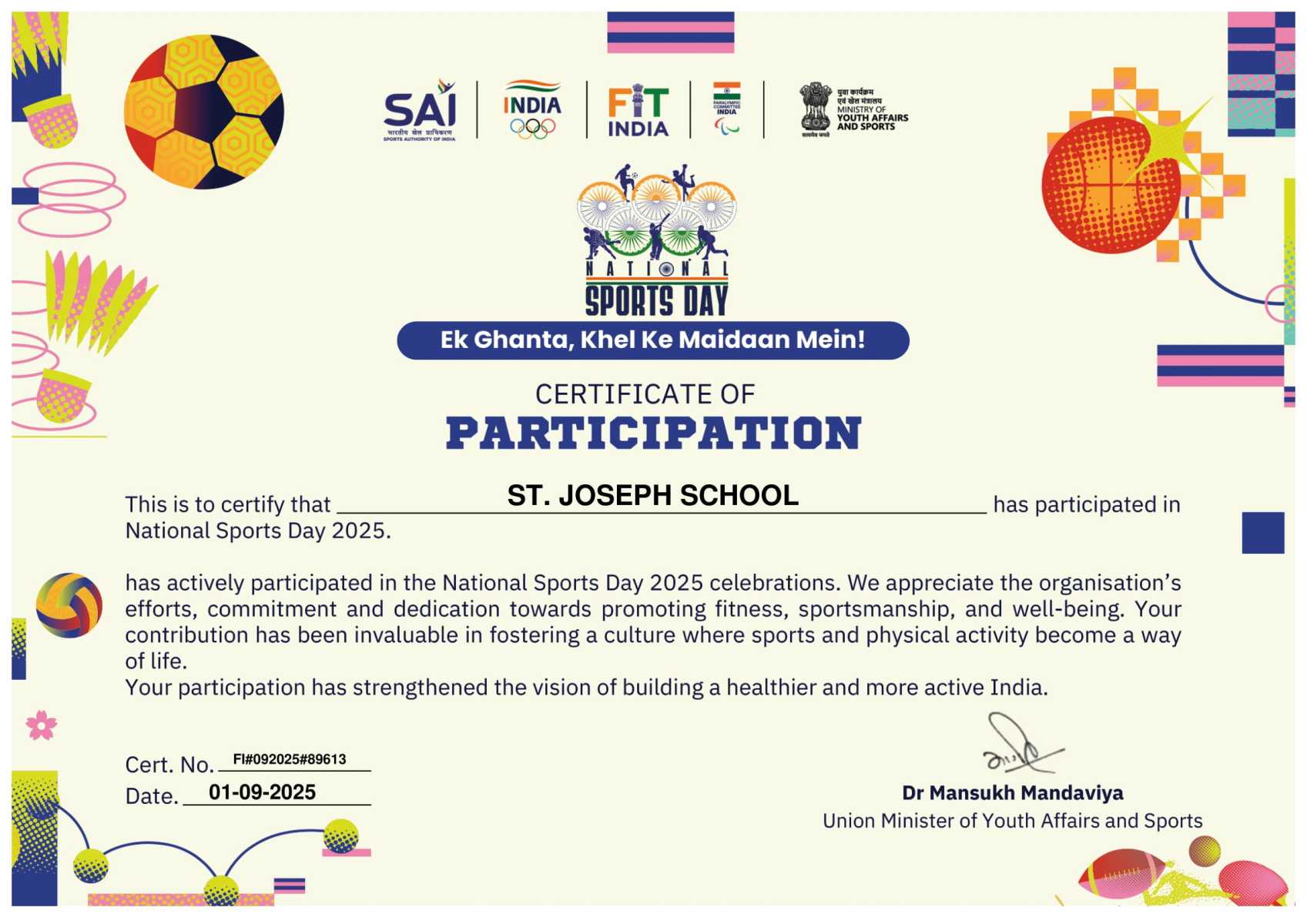 • Fit India Certificate